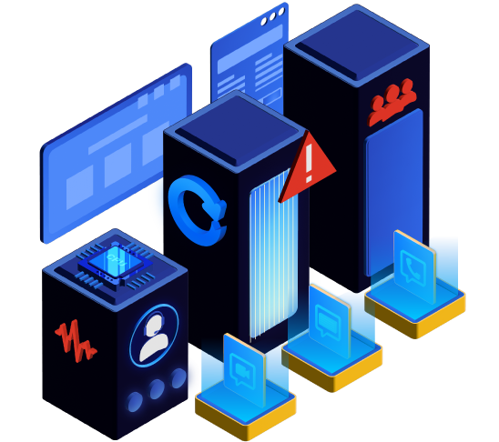 Monitorizăm atât parametrii critici de nefunctionare, cât și parametrii cu potențial de avarie, rezolvăm și/sau escaladăm către departamentul tău intern sau către terți (furnizori de comunicații, furnizori de data centere, furnizori de aplicații).